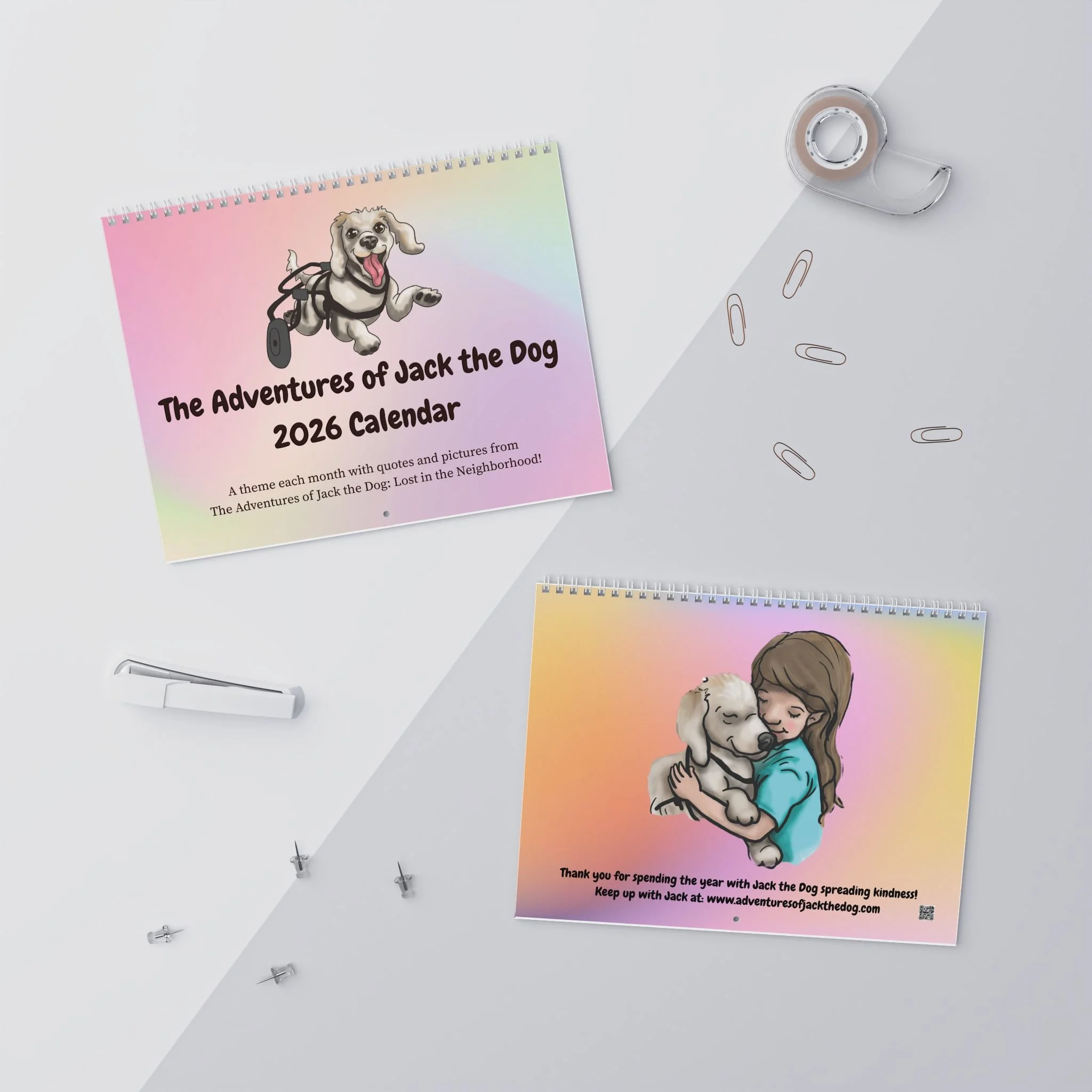 A bright, writable wall calendar made to showcase your own month-by-month designs while bringing an encouraging, uplifting vibe to any room. Each page features a large, colorful image and quote that comes directly from Jack's debut book: The Adventures of Jack the Dog: Lost in the Neighborhoodl. Each page has an area above a matte, pen-friendly grid so you can add dates, notes, and personal layouts without worrying about smudges. Wire coil binding and a centered hanging hole make flipping through months effortless and display simple. The roomy image space is ideal for illustrations, photography, or inspirational headers that set the tone for each month, while the high-quality thick paper gives a premium feel and durability throughout the year.